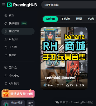 PC: Search for “RunningHub” in your browser, visit the official website (www.runninghub.cn), and use the search bar to find the “RH Figurine Store”. Find the template and click to enter.